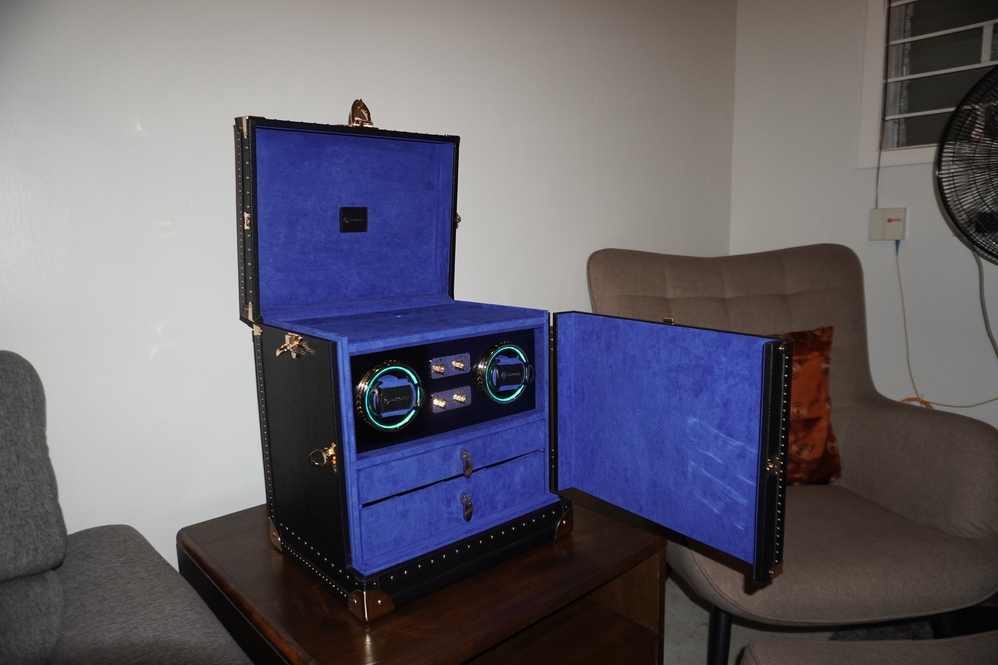 The Eclipse is calm, quiet, and always ready. It keeps your favorite two watches moving so you don’t have to think about them. Place it on your desk or beside your bed, it looks good anywhere and works without making a sound. It's simple, stylish, and made for people who like things done right.